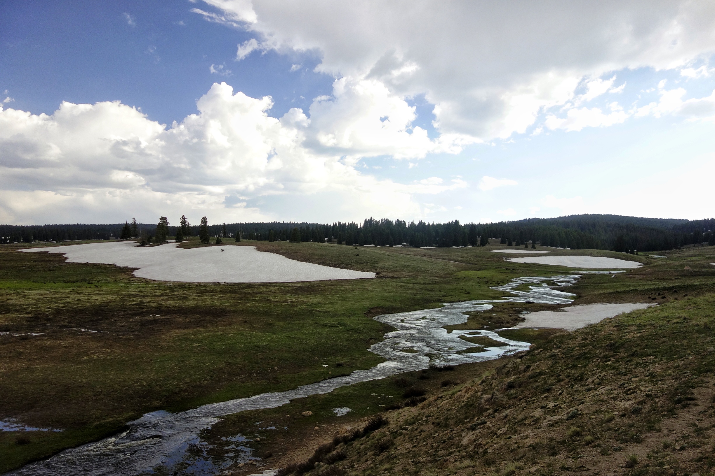 I start to hit snow up here, and I have views of snow capped peaks just over in Colorado.